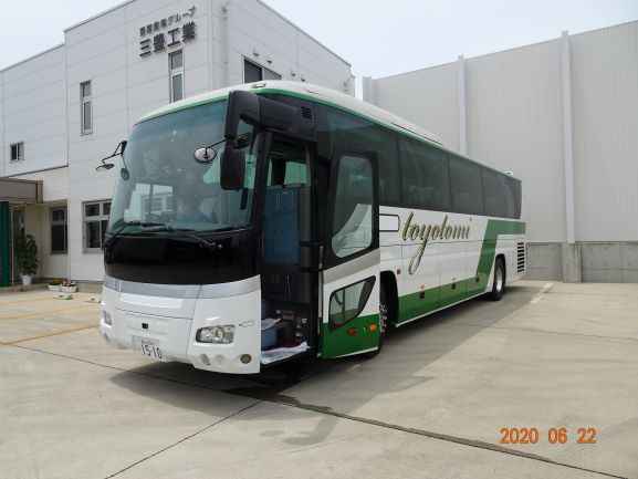豊富産業グループでは、2020年4月に野球部の選手の移動用に専用の大型バスを購入し、部活のサポートとともに、安全と移動の効率化を図ることとしました。選手の疲労を考え、座席数を減らして椅子と椅子との間隔を大きく取り、ゆったりと座ることが出来ます。コロナ感染症予防対策のため、チームはこれまで県外遠征を控えていましたが、現下の状況を勘案しつつ、今後は強化に向けて積極的に利用する予定としています。(2020年7月、野球部監督、松井)